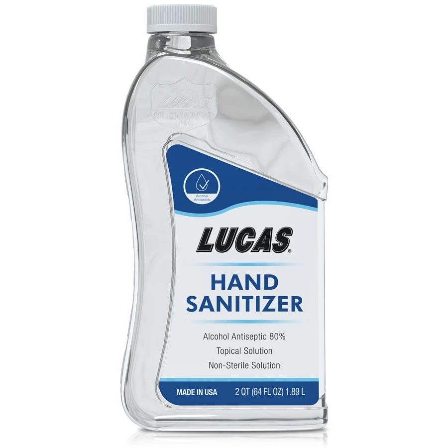 In response to the health crisis created by COVID-19, Lucas Oil Products has decided to introduce a hand sanitizer in a 64-fluid ounce (2-Quart) refill bottle. Lucas Oil has held strictly to the FDA guidance on alcohol based hand sanitizer found in the FDA’s recent policy release so our customers can be assured of the efficacy and performance of the product. Hand sanitizers can be drying to the skin, this product contains a small amount of glycerin to help reduce that tendency. Lucas Hand Sanitizer is an ideal product to carry with you and use when soap and water are not conveniently available. 80% Ethyl Alcohol