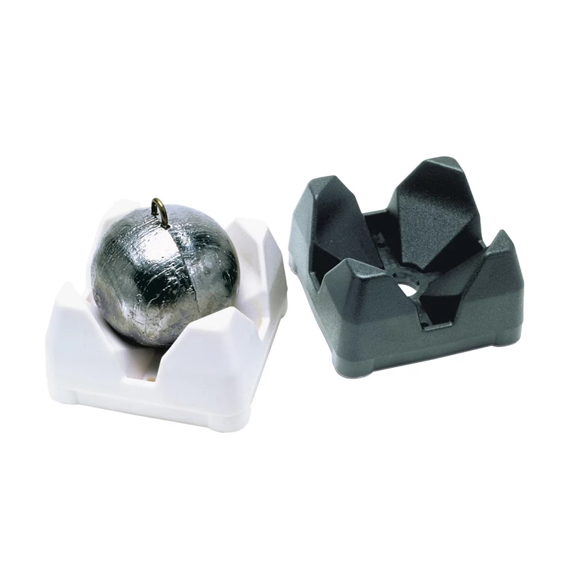2 holders for round or finned weights. Can be left free or bolted down. Black or White.